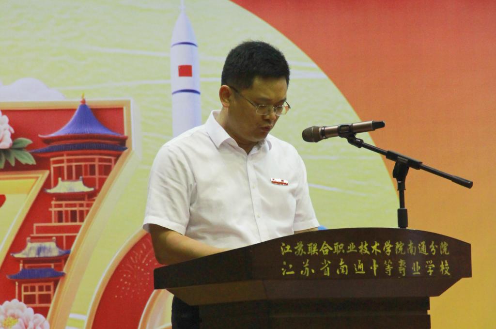 校党委书记李明生讲话。他向全校师生致以节日的问候,并向受到表彰的集体与个人表示祝贺。他回顾了新中国76年的光辉历程与抗战胜利80周年的伟大精神,强调在国家蓬勃发展的新时代背景下,学校始终坚持“成功教育”理念,深化教育教学改革,在质量提升、品牌塑造及各类竞赛中取得了丰硕成果。他号召全体师生以先进典型为榜样,进一步激发工作与学习的热情,凝心聚力,共同为将学校建设成为一流的现代化职业学校而努力奋斗。