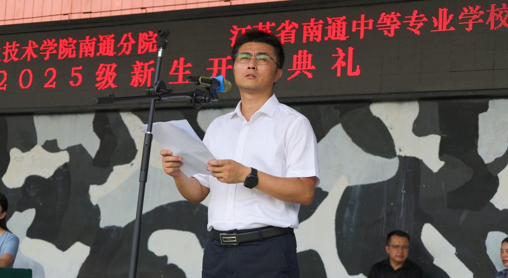 9月6日上午,我校2025级新生军训结营仪式暨开学典礼在南通市中小学生素质教育实践基地隆重举行。校领导李明生、万军、缪俊峰及各职能处室、系部负责人,家长代表、教官代表等出席活动并在主席台就座。副校长朱建锋主持仪式。
